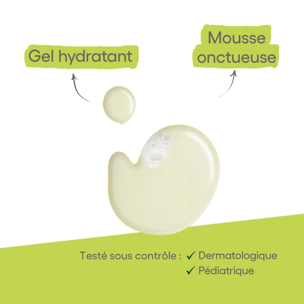 Soin d’hygiène émollient quotidien visage et corps, Le gel moussant émollient nettoie en douceur, apaise et protège les peaux sèches à tendance à l’eczéma atopique (visage et corps).