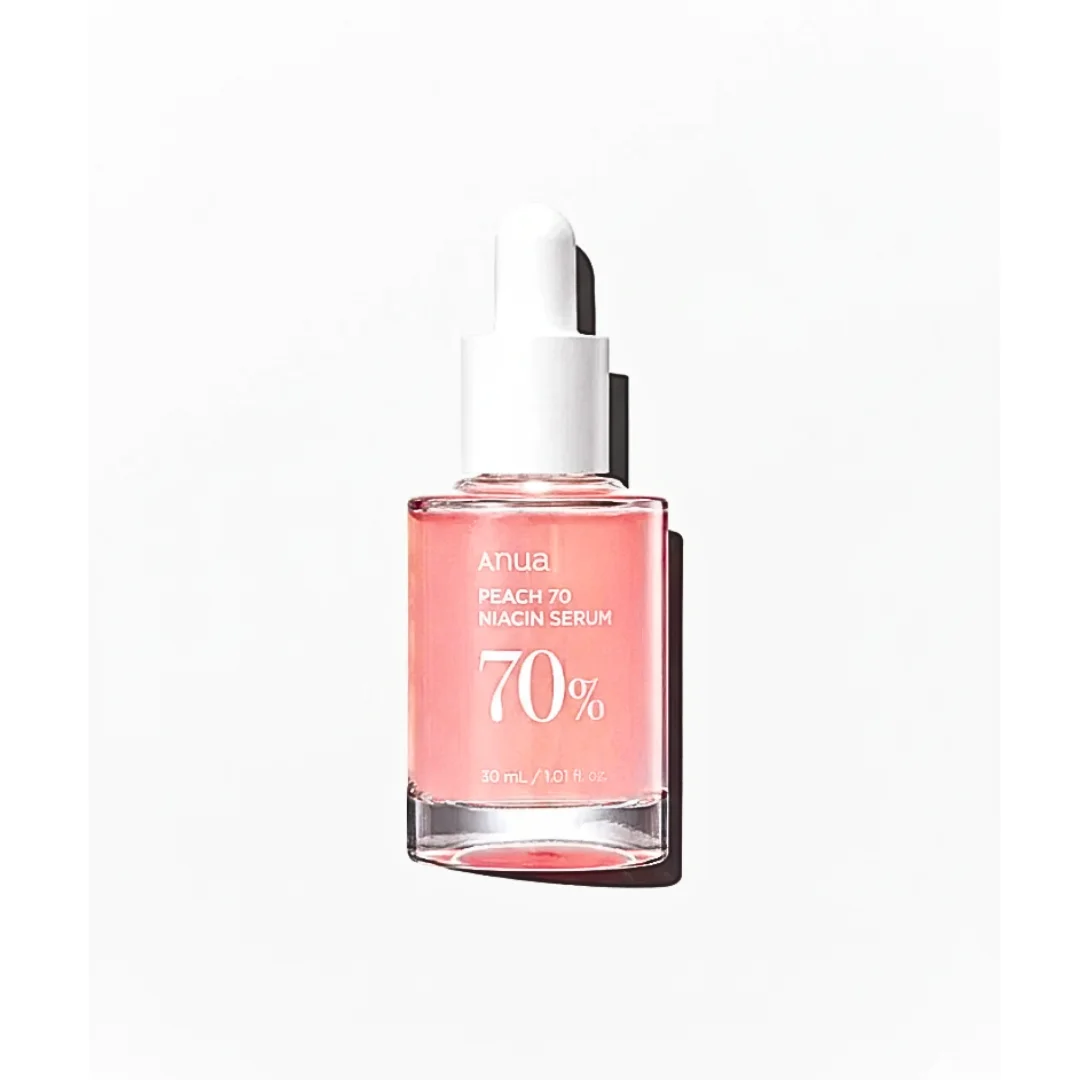 Le Anua Peach 70 Niacin Serum est un soin intensif formulé avec 70% d’extrait de pêche, reconnu pour ses propriétés hydratantes et adoucissantes. Associé à la niacinamide, il aide à unifier le teint, atténuer les taches et renforcer l’éclat naturel de la peau. Sa texture légère et fluide pénètre rapidement, apportant fraîcheur et confort sans effet gras. Idéal pour les peaux ternes, déshydratées ou sujettes aux irrégularités, ce sérum revitalise et améliore visiblement la qualité du grain de peau. Utilisé quotidiennement, il laisse le visage lumineux, lisse et plein de vitalité.