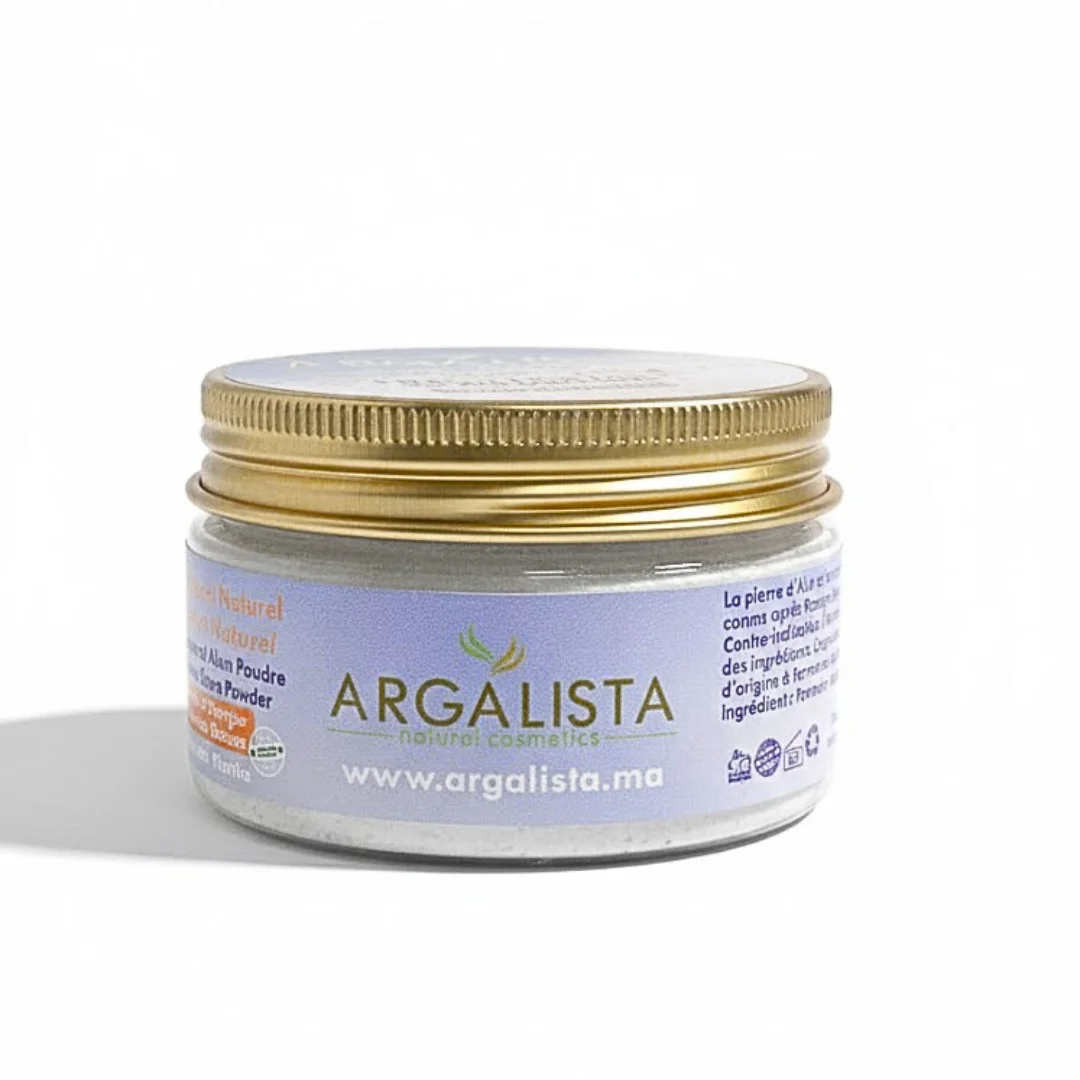 Déodorant en poudre Argalista à la fleur d’oranger, naturel et ultra-léger, pour une fraîcheur durable et une peau sèche toute la journée.