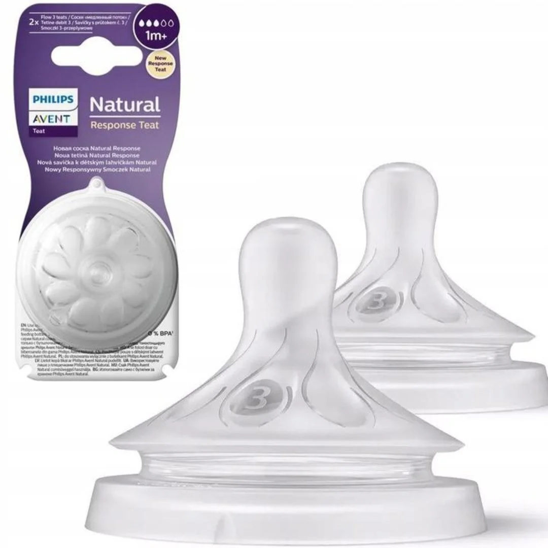 Respecte le rythme de consommation de chaque bébé La tétine Natural Response laisse le lait s’écouler uniquement lorsque bébé boit activement. Les bébés peuvent boire, déglutir et respirer à leur rythme naturel, comme au sein, ce qui facilite l’alternance sein/biberon.