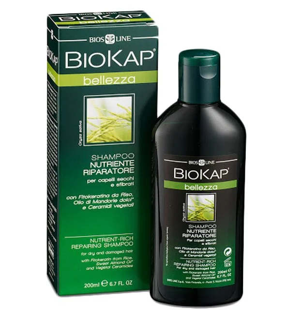 Le shampooing nourrissant réparateur Biokap, à base de phytokératine, d’huile d’amande douce et de céramides végétales, convient pour les cheveux secs et abîmés.Ce shampooing nourrissant convient pour un usage quotidien. Ce shampooing Biokap contient :De la Phytokératine de Riz, une « kératine végétale » spécifique qui crée une barrière de protection naturelle et restructurante sur la fibre capillaire.