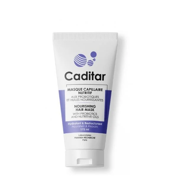 Caditar masque capillaire nutritif aux huiles d’amande douce, d’argan et de ricin, et aux probiotiques qui participent à restaurer l’équilibre du cuir chevelu.