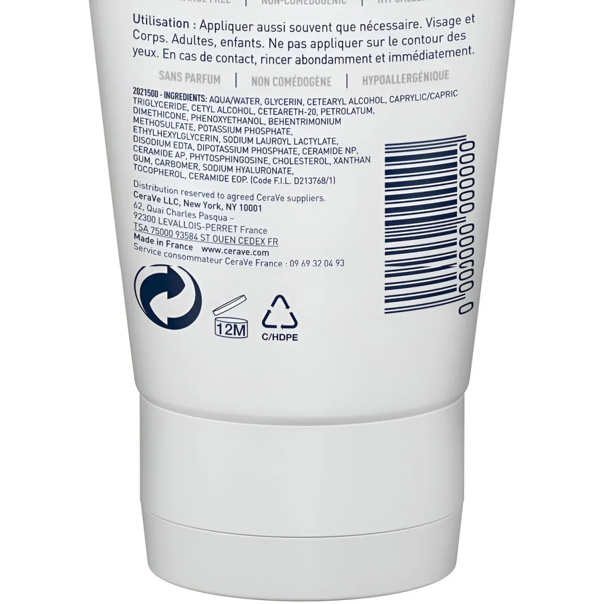 Hydrate la peau en continu et aide à restaurer la barrière protectrice de la peau. • Besoin : Hydrater | Nourrir | Peau sèche à très sèche | Peau sensible. • Ingrédients Clés : Céramides (1, 3 et 6-II) pour protéger et nourrir | Acide Hyaluronique pour maintenir la peau hydratée | Glycérine pour adoucir et protéger. • Sécurité : Sans Parfum | Hypoallergénique | Non-Comédogène. • Utilisation : Appliquer aussi souvent que nécessaire. Visage, corps et mains. Approuvé par les membres de l’Association Française de l’Eczéma.