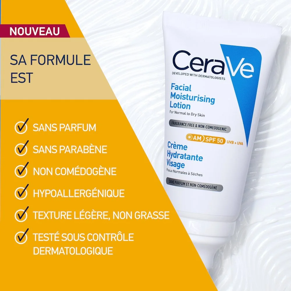 CeraVe Crème hydratante visage SPF50 Peaux Normales à Sèches | 52ml