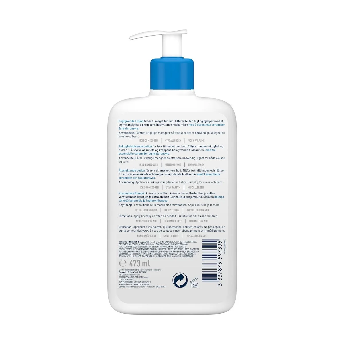 CeraVe Lait Hydratant Léger Peau Sèche à Très Sèche | 473ml