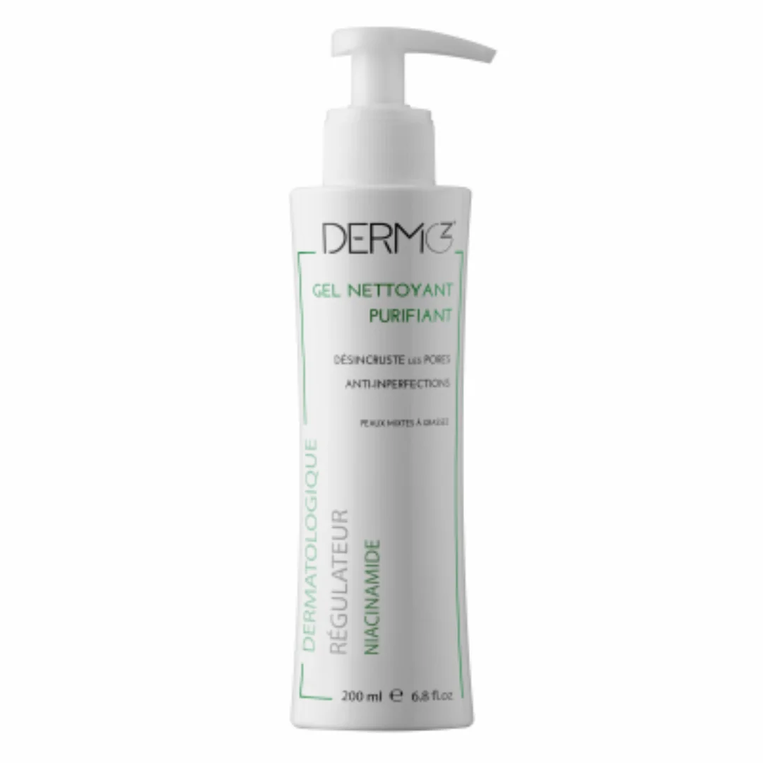 DERMOZ GEL PURIFIANT est un gel nettoyant et désincrustant pour les pores formulé spécialement pour les peaux sensibles, mixtes et grasses à imperfections.