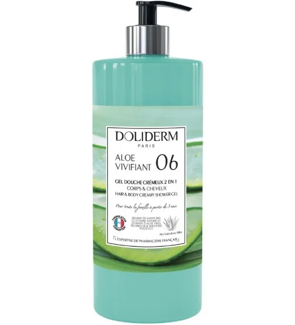 Notre gel douche crémeux 2 en 1 Doliderm Aloe Vivifiant 06 vous offre un moment ultra-rafraîchissant dès le réveil. Riche en beurre de karité biologique et aux extraits naturels d’aloe vera (reconnu pour ses vertus réparatrices et régénérantes), il hydrate votre peau en douceur et la protège tout au long de la journée. Sa technologie FUCOGEL® issue d’actifs végétaux, cible les sensations de tiraillement des peaux sensibles. Grâce à une double action hydratante et réparatrice, votre peau retrouve immédiatement douceur et confort.