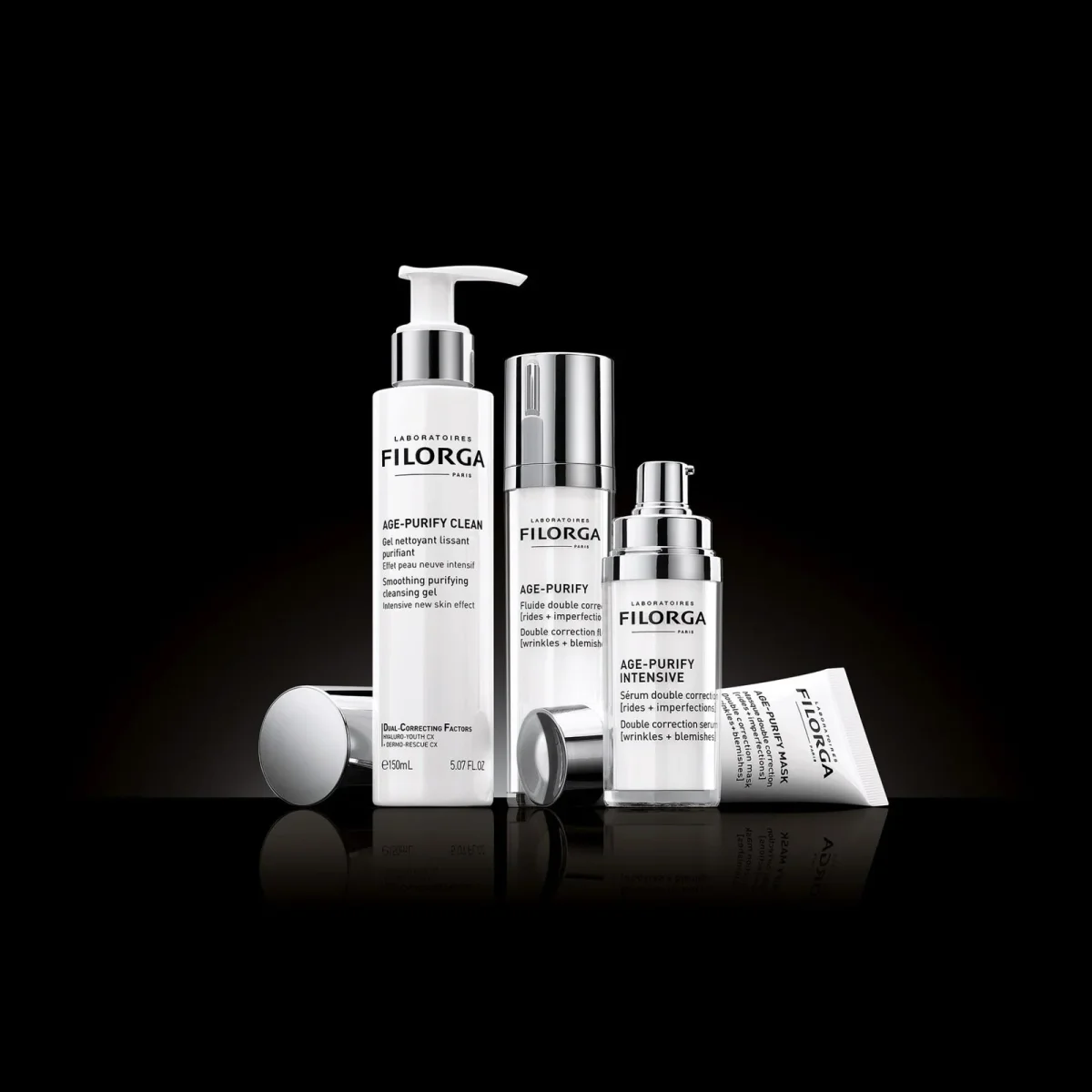 • AGE-PURIFY est un fluide correcteur double action, anti-rides et anti-imperfections, renforcé d’un effet bouclier anti-pollution.