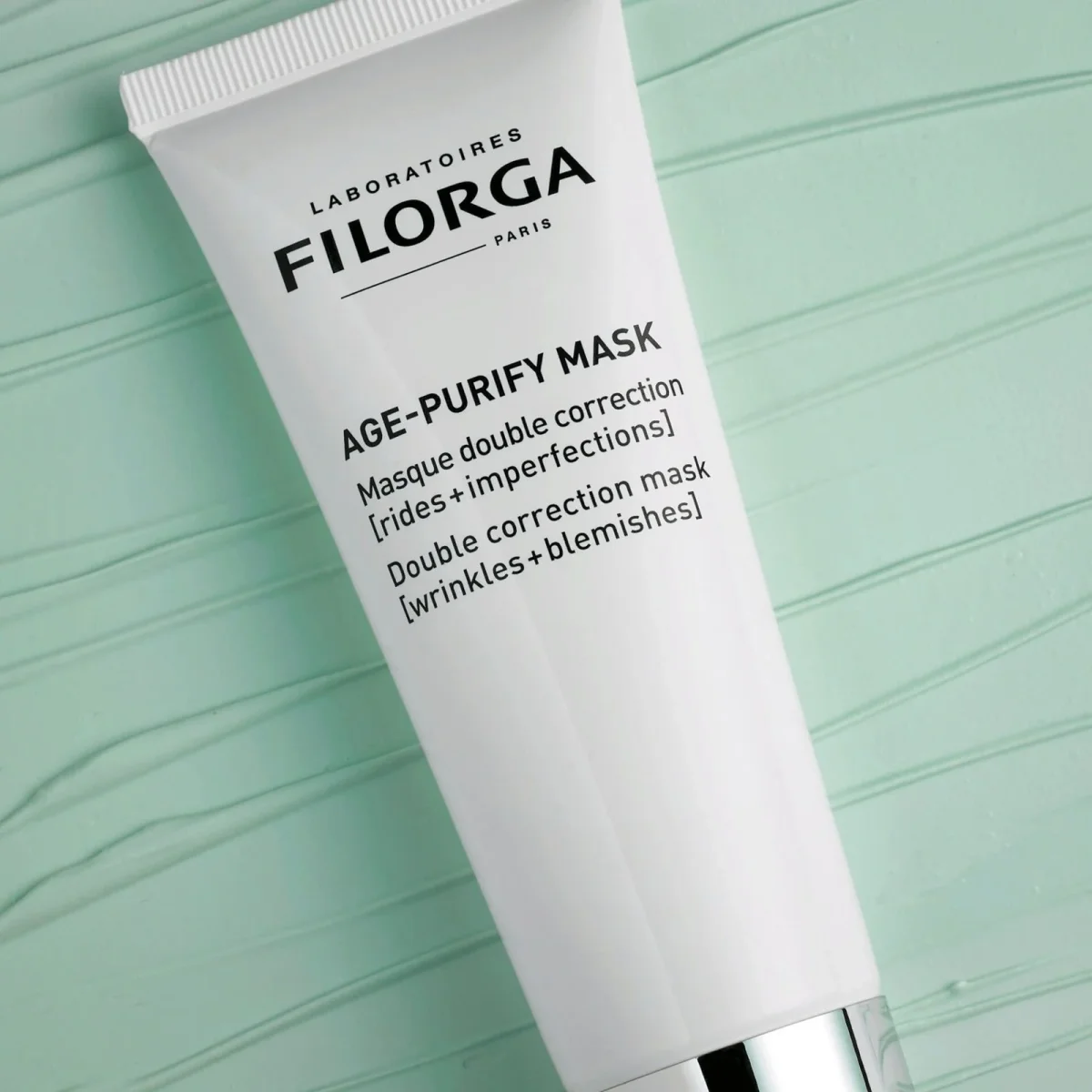 • AGE-PURIFY MASK est un masque anti-âge double correction pour le visage, qui cible simultanément rides et imperfections (pores, brillances, boutons, points noirs et rougeurs).