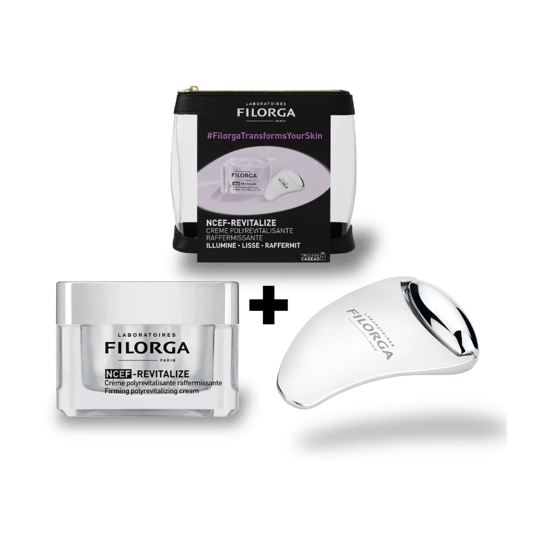 Le Coffret NCEF-Revitalize de Laboratoires Filorga Paris est un ensemble de soins anti-âge comprenant la Crème polyrevitalisante raffermissante NCEF-Revitalize (50ml) et un Gua Sha Roller offert.