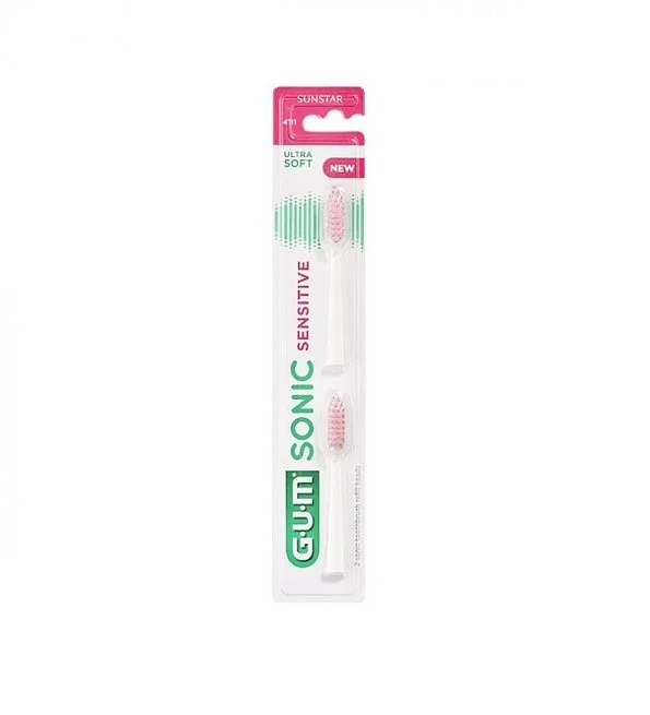 Gum Brosse à Dents Electrique N°4111 Sonic Sensitive Recharge Ultra Soft 2 unités sont des têtes de brosse à dents compatibles avec la brosse à dents électrique GUM Sonic Sensitive.