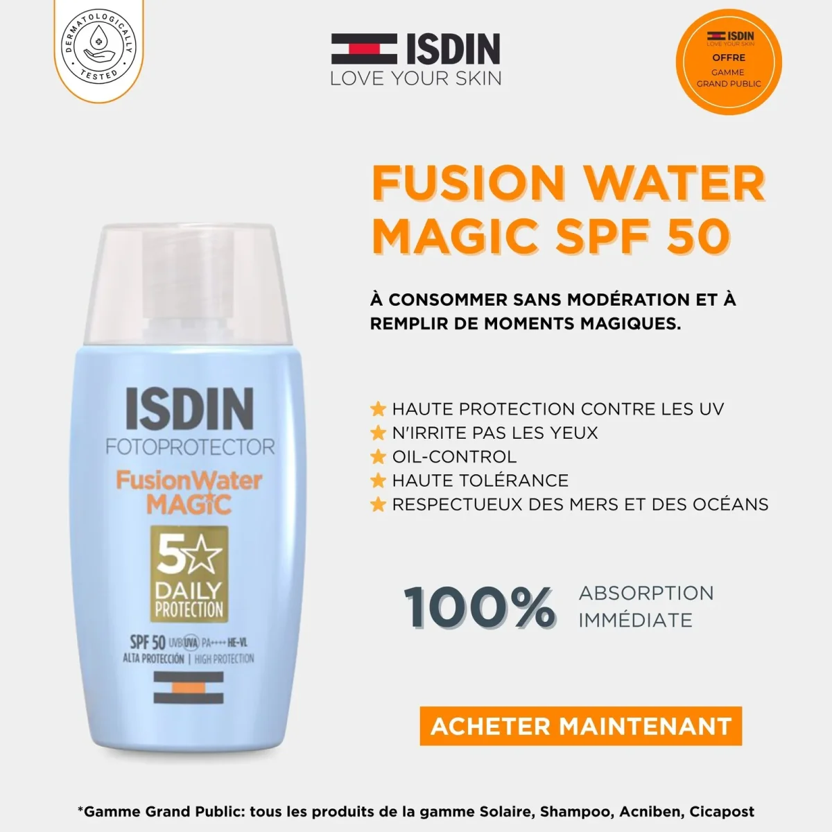 ISDIN Fotoprotecteur Fusion Fluide water Magic 50Ml = Magic Repair 10ml Offert
