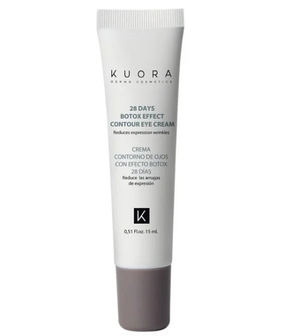 KUORA Contour des Yeux Effet Botox 15ML avec Syn®-Ake et l’extrait d’hamamélis donne un effet botox naturel en seulement 28 jours. Cette crème est destinée pour tous types de peau et permet de repulper le contour des yeux ce qui réduit l’apparence des pattes d’oie.