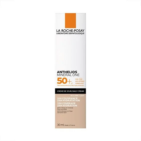 ANTHELIOS Mineral One offre une couvrance naturelle, hydrate votre peau pendant 24 heures et la protège de la photopollution. • Indice SPF : 50+ (UVA, UVB, IR-A et lumière visible) • Besoin : Protection Solaire | Peaux Sensibles. • Ingrédients Clés : Acide Hyaluronique pour hydrater | Vitamine E pour prévenir le vieillissement cutané | Dioxyde de Titan pour protéger contre les UVA/UVB. • Sécurité : Hypoallergénique. • Utilisation : Appliquer comme dernière étape de votre routine de soin. Visage.