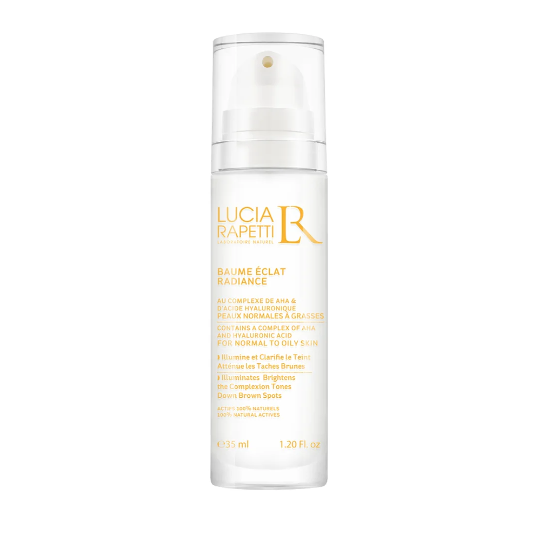 Une précieuse synergie d’AHA, Acide Hyaluronique et d’actifs anti-taches, de polysaccharides de Calendula et de Tillleul freine l’agglomération des pigments de mélanine, responsable des irrégularités de pigmentation et de la formation des taches. Son utilisation régulière uniformise le teint, met tout le visage en lumière. Booster de jeunesse du visage, anti-oxydant, il protège la peau des agressions des radicaux libres. Formule à pourcentage de AHA spécifique aux peaux normale et/ ou grasses.