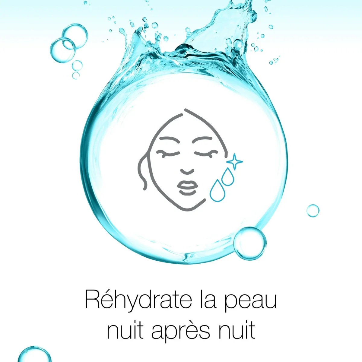 â– Il réhydrate la peau nuit après nuit et améliore sa résistance contre la déshydratation – la combinaison de l’action réhydratante de l’acide hyaluronique et du cocktail d’agents émollients aide à rendre la peau plus résistante contre la perte en eau. Résultats : Effet immédiat : du jour au lendemain, la peau est réhydratée, et le reste pendant 24h.
