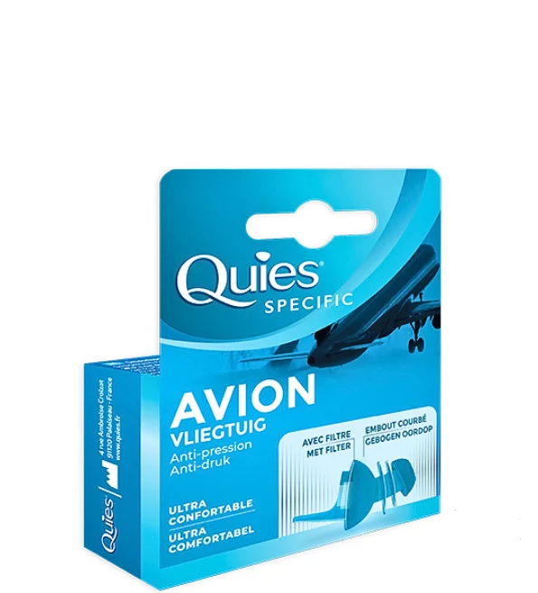 Les bouchons d’oreilles Quies Specific Avion Adulte sont spécialement conçus pour atténuer les variations de pression ressenties pendant le décollage et l’atterrissage. Grâce à leur filtre breveté, ils régulent la pression dans le conduit auditif, limitant les douleurs ou les bourdonnements.