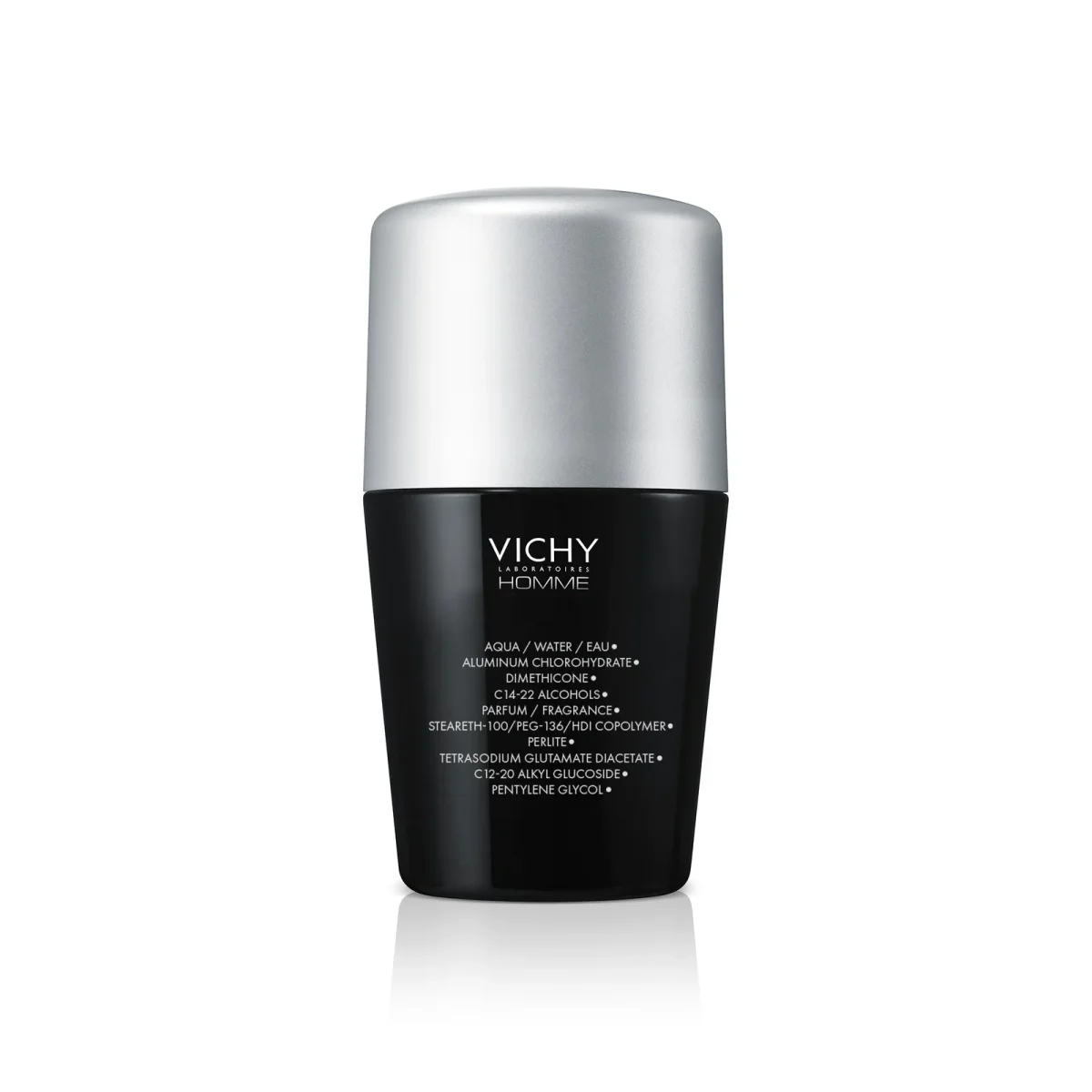 Le dermo-détranspirant Vichy Homme Invisible Resist 72h, formulé spécialement pour les hommes, associe efficacité grâce à son action anti-humidité et anti-odeur et une tolérance optimale avec sa formule sans alcool hypoallergénique testée sur peau sensible pour une action anti-irritations. Sa technologie Invisi-Lock approuvée par l’IFTH (Institut Français du Textile et de l’Habillement) prévient l’apparition de traces jaunes sur les textiles clairs, blanches sur les textiles foncés et des résidus qui peuvent les rigidifier. Les bénéfices de sa technologique de pointe unique est cliniquement prouvée est approuvée par 90% des utilisateurs qui le juge efficace contre les mauvaises odeurs.