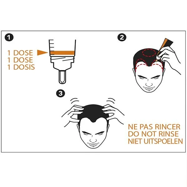 Ce traitement s’applique quotidiennement, matin et soir, sur le cuir chevelu à l’aide de l’applicateur adapté durant une période de 2 semaines.