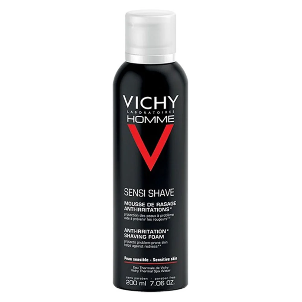 Les peaux sensibles étant très souvent sujettes aux irritations d’après-rasage, il est préférable d’utiliser une mousse atténuant les effets du passage de la lame. La mousse à raser anti-irritations de Vichy répond à ce besoin grâce aux effets adoucissants de sa composition.