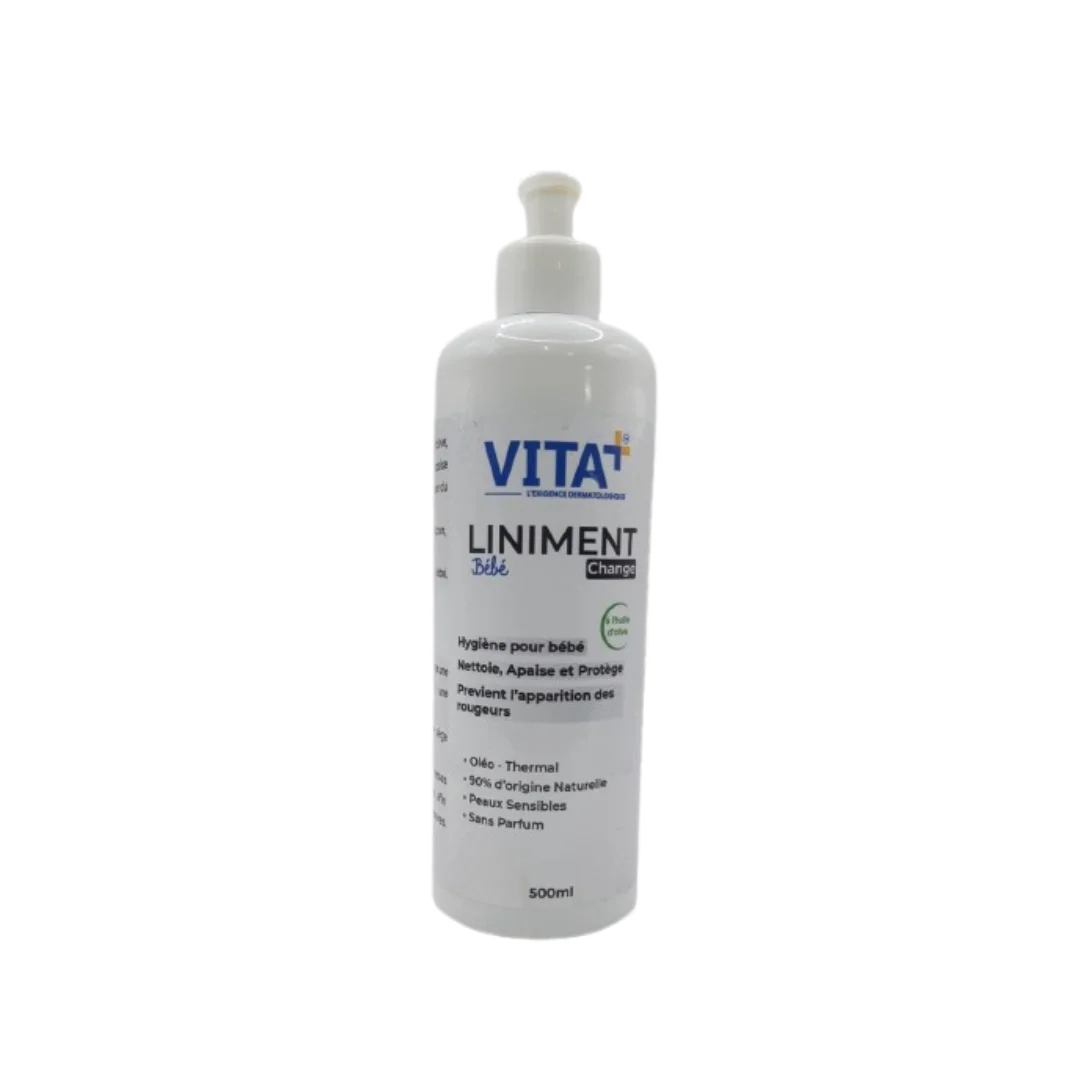 Le Vita+ Liniment Change Bébé est un soin doux et naturel pour nettoyer et protéger la peau délicate de bébé, sans rinçage. Hypoallergénique et testé sous contrôle pédiatrique.