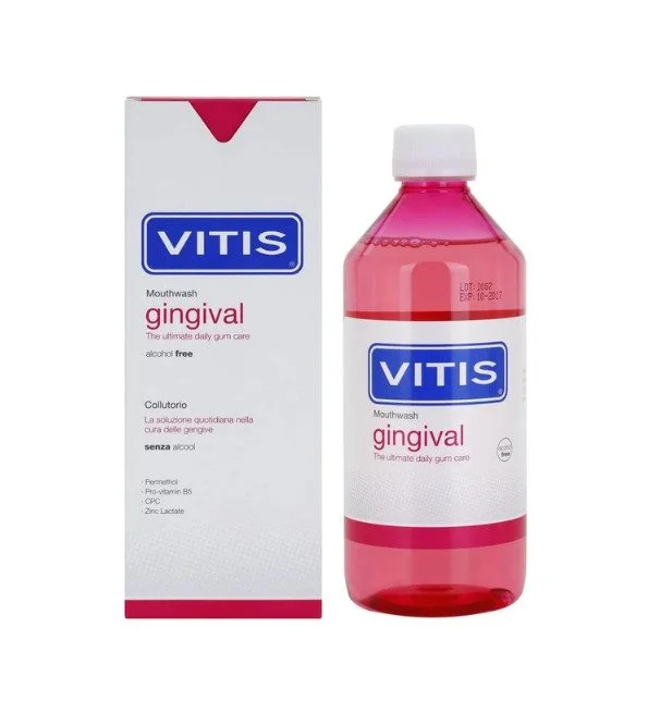 Le bain de bouche gingival VITIS est spécifiquement formulé pour contrôler la gingivite. L’utilisation à long terme aide à prévenir l’inflammation et le saignement gingivaux. Il inhibe également la formation de biofilmoral (plaque bactérienne) et réduit son accumulation dans la cavité buccale.